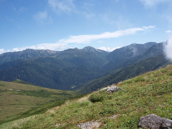 黒部本流が鷲羽岳に向かって僅かに光っている