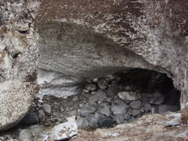 巨大スノーブリッジの上部は凍結だ、そろりそろり歩ききると