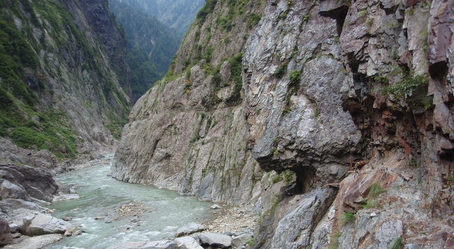 黒部の魔人こと大タテガビンをへつってルートは続く